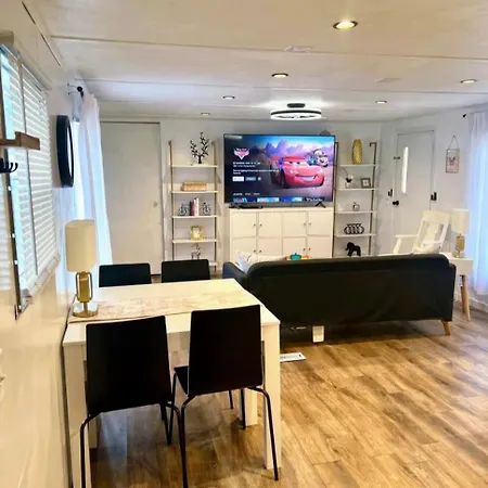 Urban Chic Trailer Apartment includes a fully equipped kitchen with air conditioning for utmost comfort.